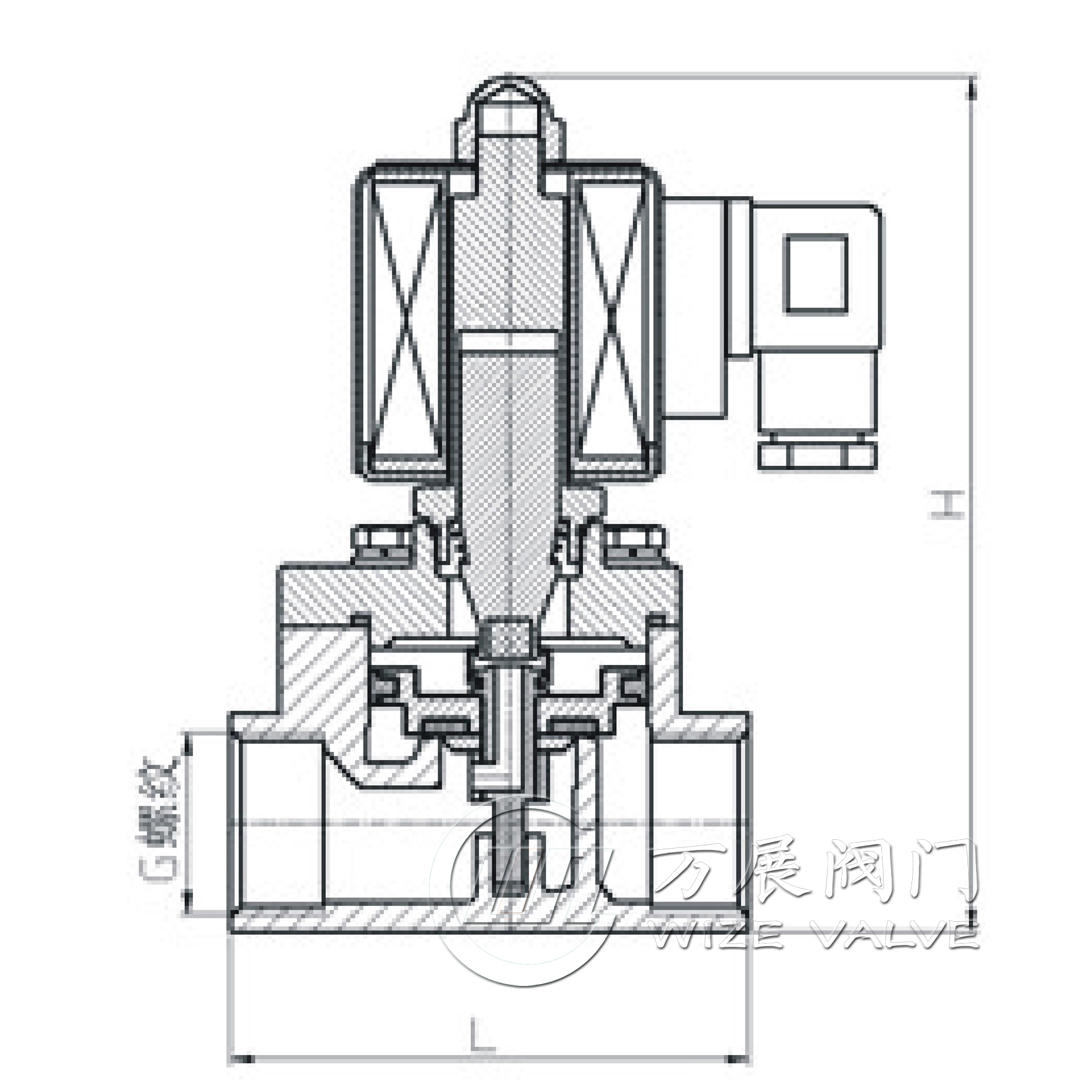 原理:它是一种直动和先导式相结合的原理,当入口与出口没有压差时,通电后,电磁力直接把先导小阀和主阀关闭件依次向上提起,阀门打开。当入口与出口达到启动压差时,通电后,电磁力先导小阀,主阀下腔压力上升,上腔压力下降,从而利用压差把主阀向上推开;断电时,先导阀利用弹簧力或介质压力推动关闭件,向下移动,使阀门关闭。