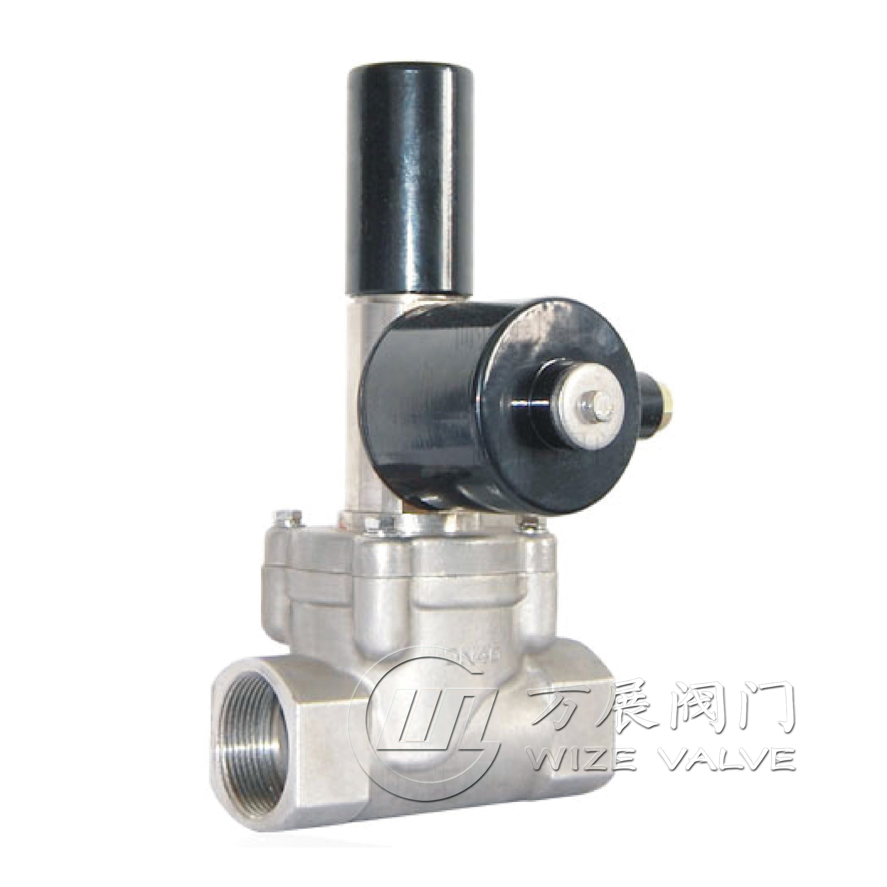 WZRB常闭型:电磁阀在日常工作中一直开启时,电磁线圈需一直处于通电状态。当控制系统探测到事故可能发生时,系统发出电信号指令,电磁线圈只需瞬时失电即可触发阀门快速关闭,并进入自锁状态。此时即使通上电源,阀门仍处于自锁关闭状态,不会重新自动打开。当事故处理完毕,如需再接通气源时,需人工重新开启阀门,电磁阀线圈先得电,然后把手柄拉至极限位置(最大行程处)后松开,才会恢复供气。